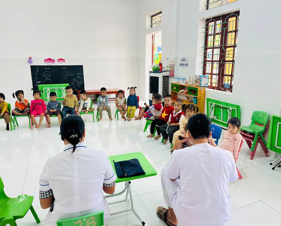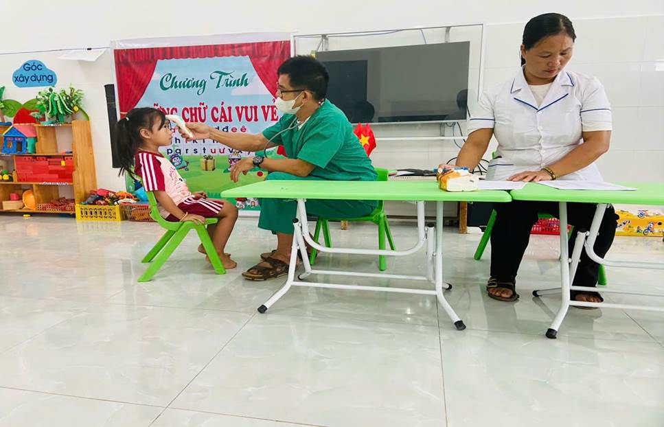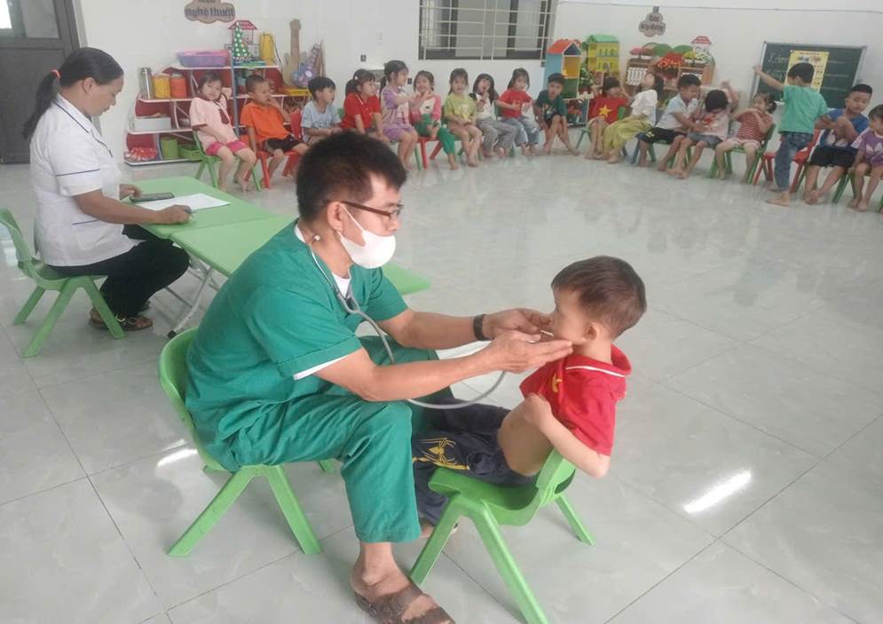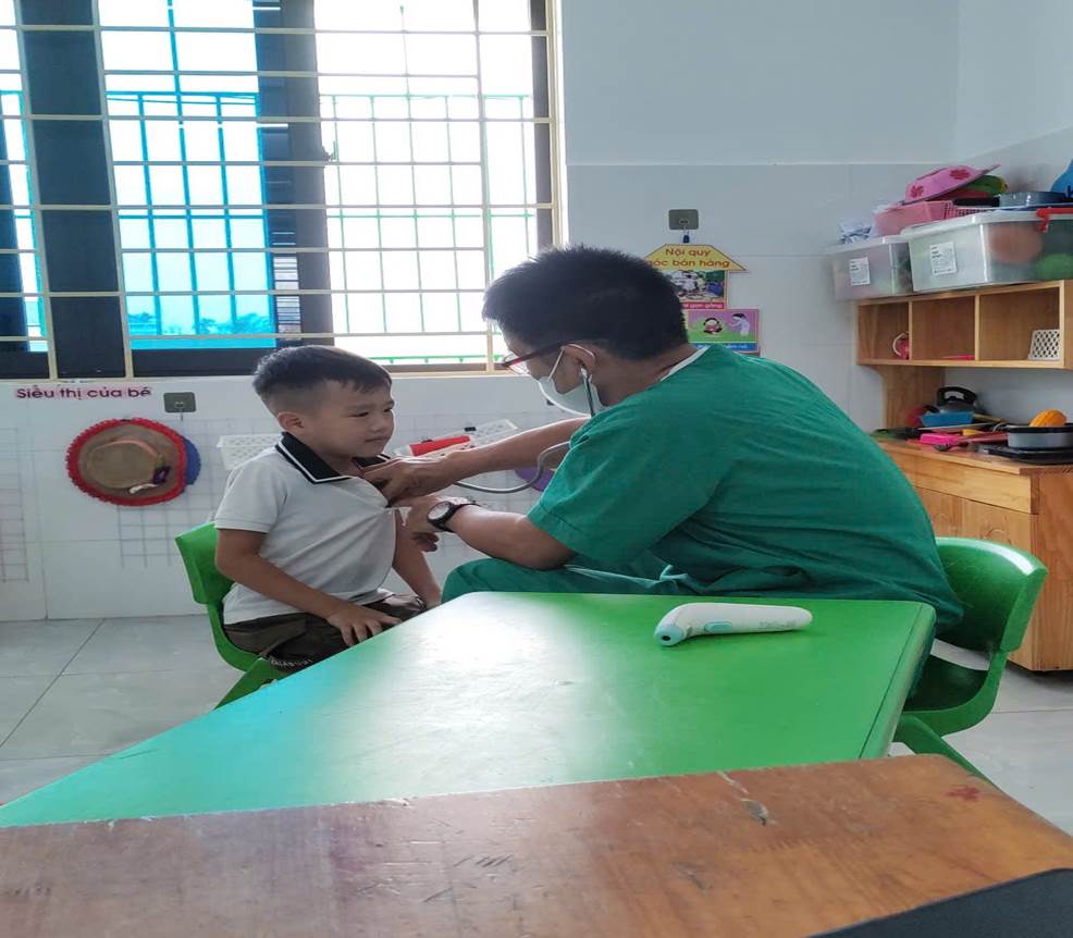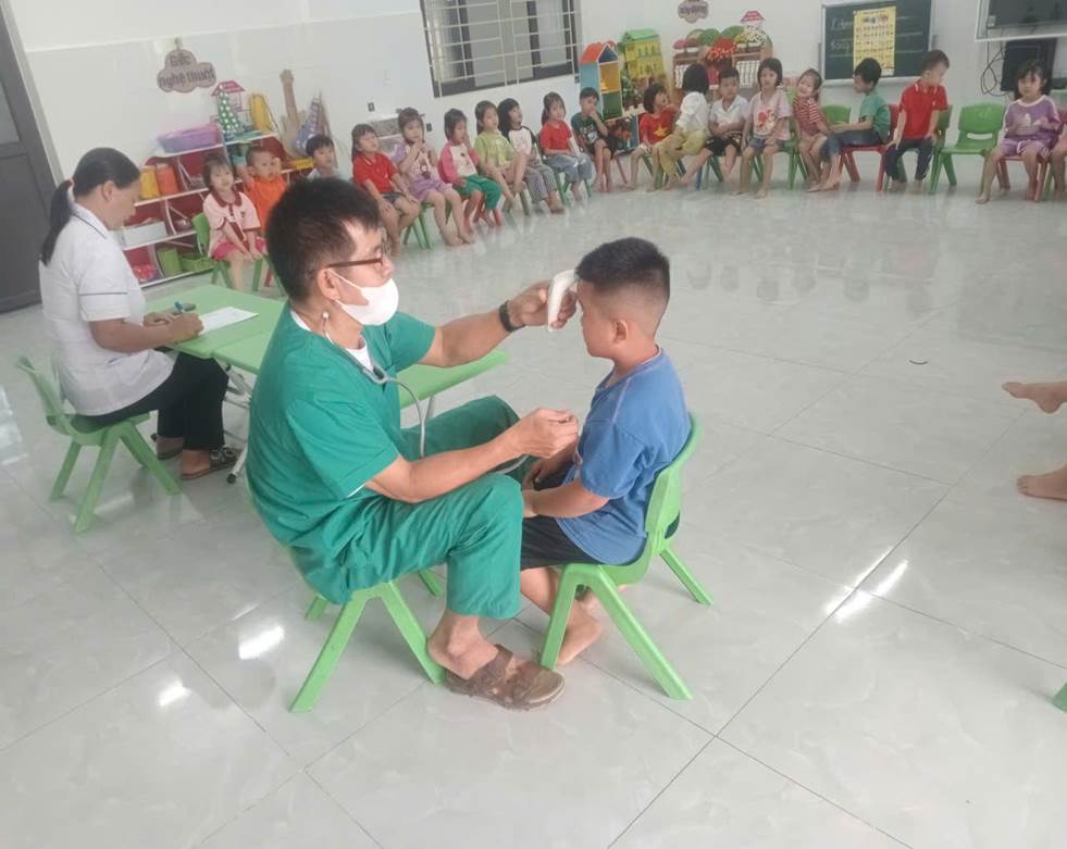 Nhằm đảm bảo cho trẻ được theo dõi, quản lý sức khỏe thường xuyên, ngay từ đầu năm học, Ban giám hiệu nhà trường đã xây dựng kế hoạch cụ thể, phân công giáo viên phụ trách, chuẩn bị chu đáo về cơ sở vật chất, sắp xếp thời gian hợp lý để hoạt động khám diễn ra thuận lợi, an toàn và hiệu quả. Đội ngũ y bác sĩ của Trạm Y tế xã Quan Thành trực tiếp khám cho trẻ là Bác sĩ Ngô Văn Tấu – Trạm trưởng trạm y tế đã tiến hành khám tổng quát, đo chiều cao, cân nặng, kiểm tra tai – mũi – họng, răng – miệng, mắt, da liễu, tim phổi... giúp phát hiện sớm các vấn đề về sức khỏe của trẻ.